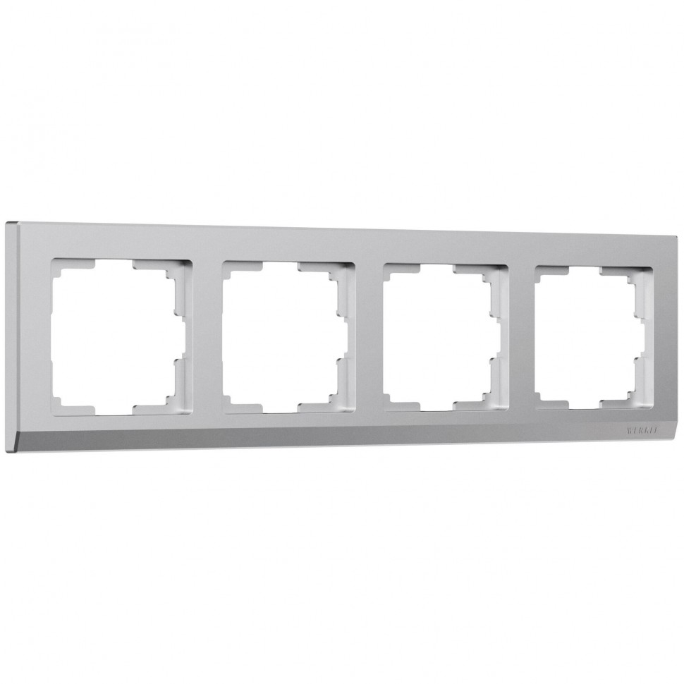 Рамкa Stark, 4 поста, цвет - серебряный матовый, пластмасса