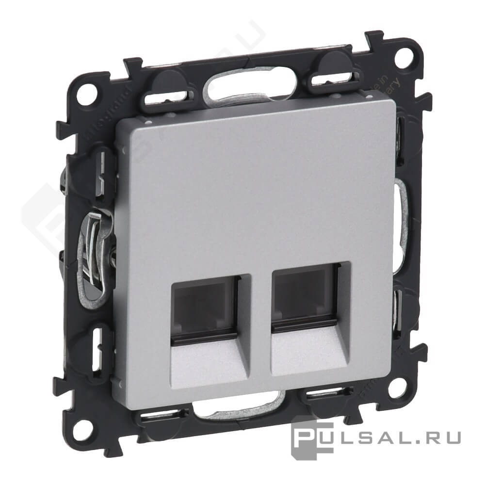 Розетка телефонная RJ11 Valena Life, двойная, цвет - алюминий