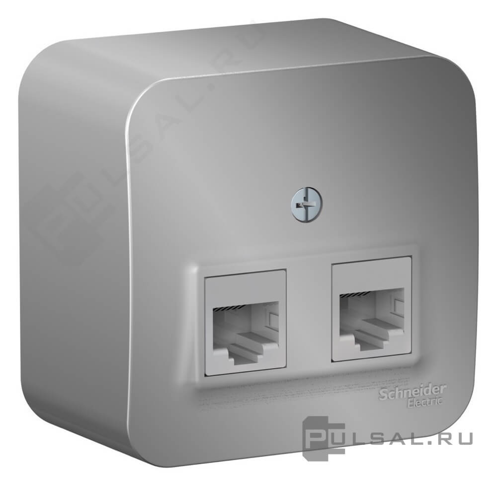 Розетка компьютерная RJ45 + телефонная RJ11 Blanca, двойная, цвет - алюминий