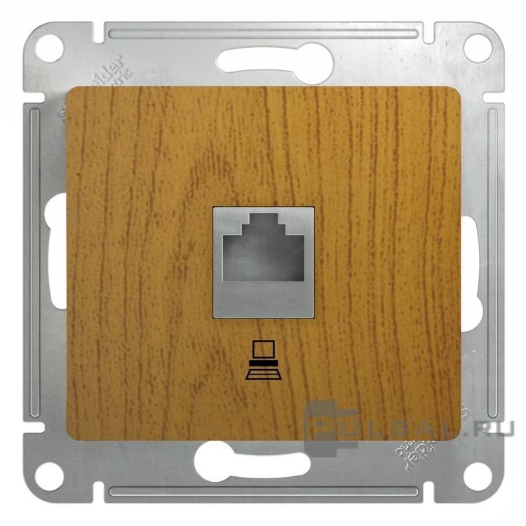 Glossa, со шторками, с заземлением, одинарная, винтовые клеммы, цвет - дуб