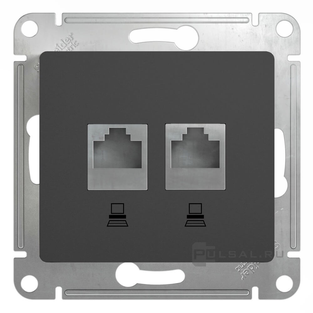 Glossa, без шторок, с заземлением, одинарная, винтовые клеммы, цвет - антрацит
