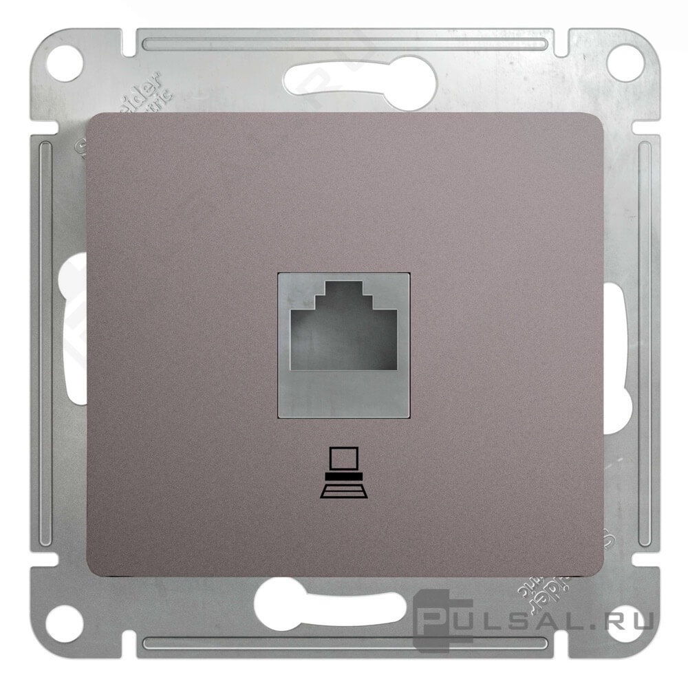 Розетка компьютерная RJ45 Cat.5e (UTP) Glossa, одинарная, цвет - платина