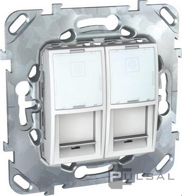 Розетка телефонная RJ11 Unica Базовая, Unica Хамелеон, Unica Quadro, двойная, цвет - белый