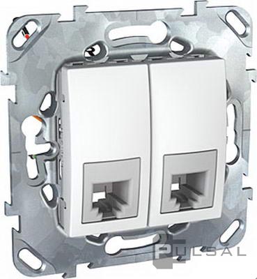 Розетка телефонная RJ11 Unica Базовая, Unica Хамелеон, Unica Quadro, двойная, цвет - белый