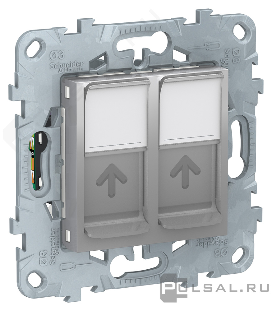 Unica New Pure, Unica New Studio, без шторок, с заземлением, одинарная, безвинтовые клеммы, цвет - алюминий