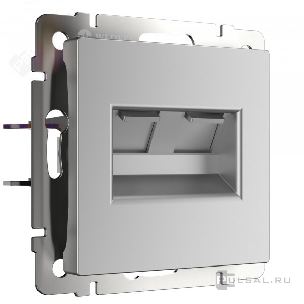 Розетка акустическая Alumax, Split, Slab, Senso, Baguette, Acrylic, Platinum, Elite, Snabb, Stream, Flock, Stark, Fiore, Favorit, Diamant, Aluminium, Antik, Metallic, 2 пары, цвет - серебряный
