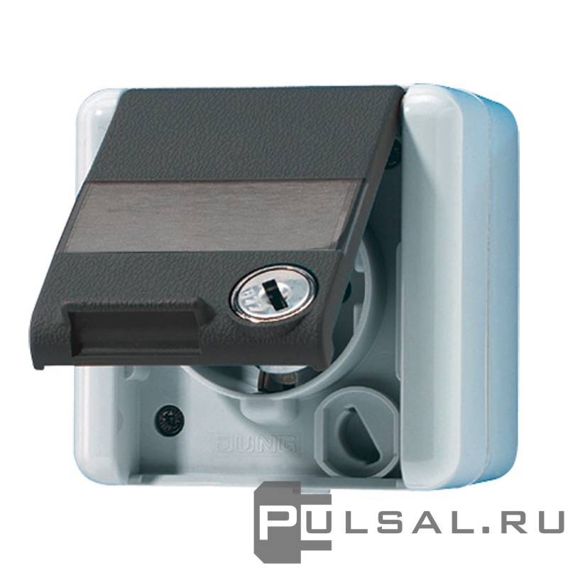 Розетка запираемая на ключ WG 800, без шторок, с крышкой, с заземлением, одинарная, винтовые клеммы, цвет - серый, антрацит