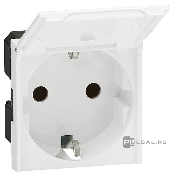 Розетка антибактериальная Mosaic, со шторками, с крышкой, с заземлением, одинарная, безвинтовые клеммы, цвет - белый