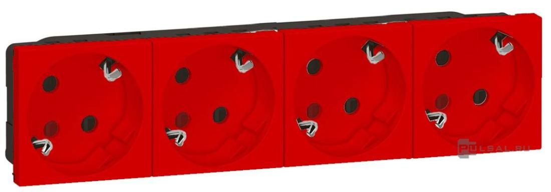 Mosaic, DLP, DLP floor, DLP IP 44, DLP IP 40, без шторок, с заземлением, одинарная, безвинтовые клеммы, цвет - красный