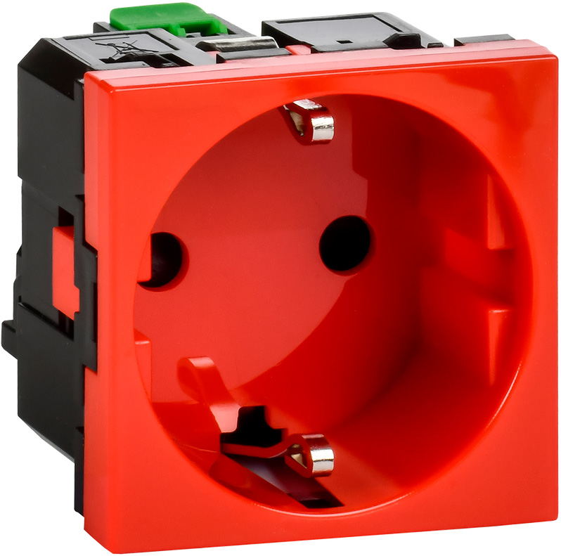 Розетка Mosaic, DLP, DLP floor, DLP IP 44, DLP IP 40, с заземлением, одинарная, безвинтовые клеммы, цвет - красный