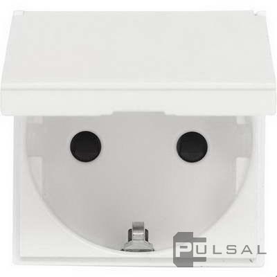 Розетка Zenit, со шторками, с крышкой, с заземлением, одинарная, винтовые клеммы, цвет - белый