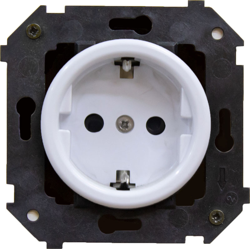 Розетка Шедель, без шторок, с заземлением, одинарная, винтовые клеммы, цвет - белый