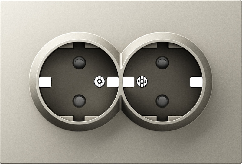Накладка электрической розетки A07 WAVE, A07 NATURAL ROUND, со шторками, с заземлением, двойная, цвет - кашемир матовый