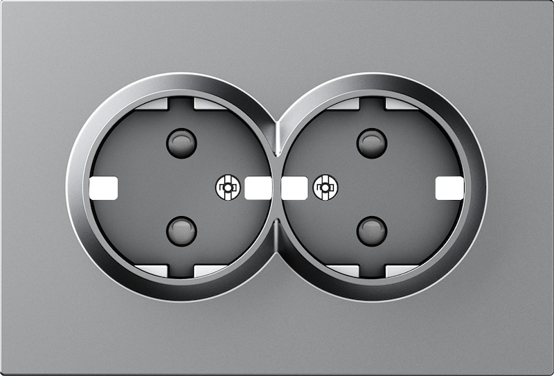 Накладка электрической розетки A07 WAVE, A07 NATURAL ROUND, со шторками, с заземлением, двойная, цвет - серый матовый