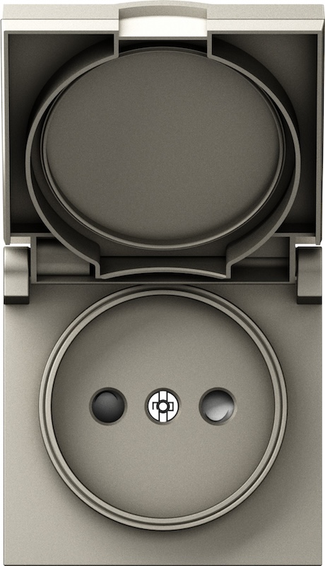 Механизм розетки A07 NATURAL, A07, A07 WAVE, S08, A07 NATURAL ROUND, со шторками, с крышкой, без заземления, одинарная, винтовые клеммы