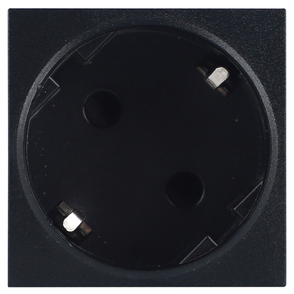 Розетка 45° Лючки DDSB, Лючки DFB, со шторками, с заземлением, одинарная, безвинтовые клеммы, цвет - черный матовый