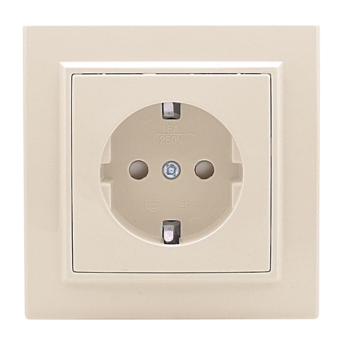 Розетка Минск, со шторками, с заземлением, одинарная, безвинтовые клеммы, цвет - бежевый