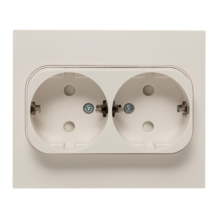 Розетка Стокгольм, со шторками, с заземлением, двойная, безвинтовые клеммы, цвет - белый