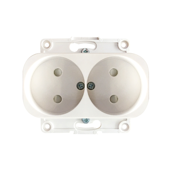 Розетка Стокгольм, со шторками, без заземления, двойная, безвинтовые клеммы, цвет - белый