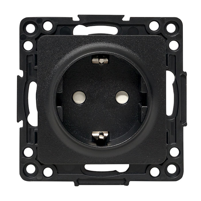 Стокгольм, Connect, со шторками, с заземлением, одинарная, безвинтовые клеммы, цвет - черный