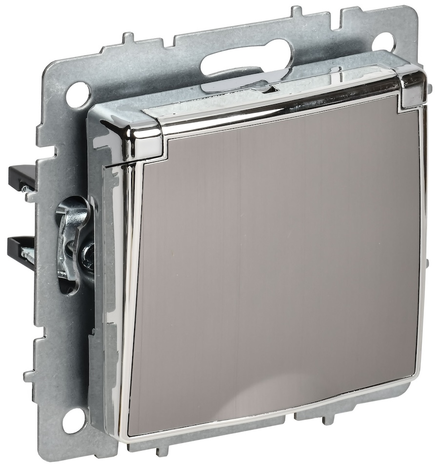 Розетка BRITE, со шторками, с крышкой, с заземлением, одинарная, винтовые клеммы, цвет - никель