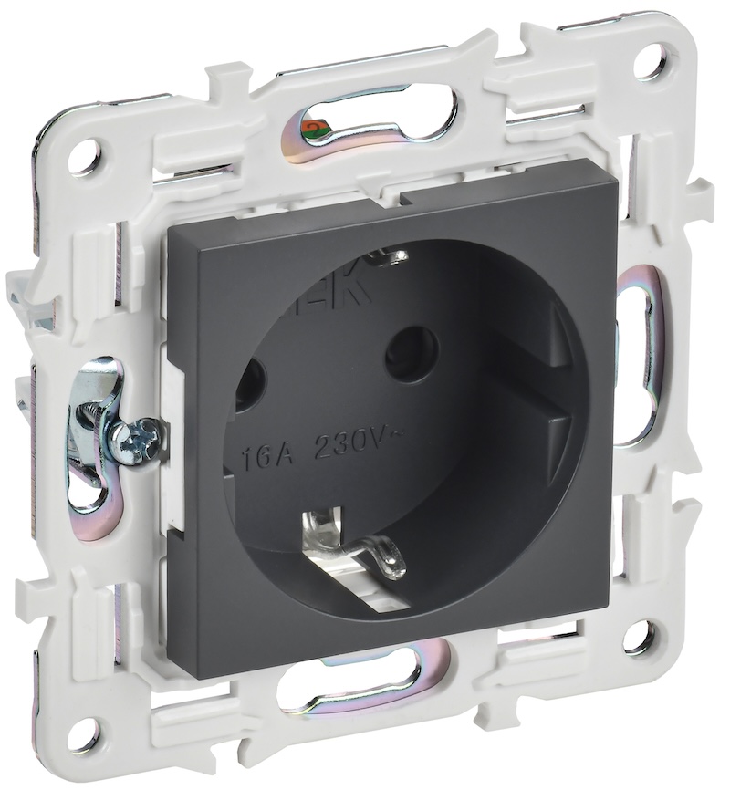 Розетка Skandy, со шторками, с заземлением, одинарная, безвинтовые клеммы, цвет - титан