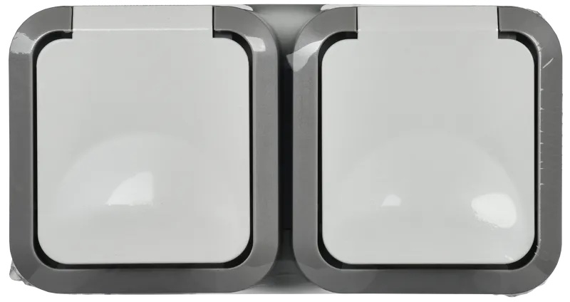 Розетка (вертикальный блок) TORS, со шторками, с крышкой, с заземлением, двойная, безвинтовые клеммы, цвет - белый