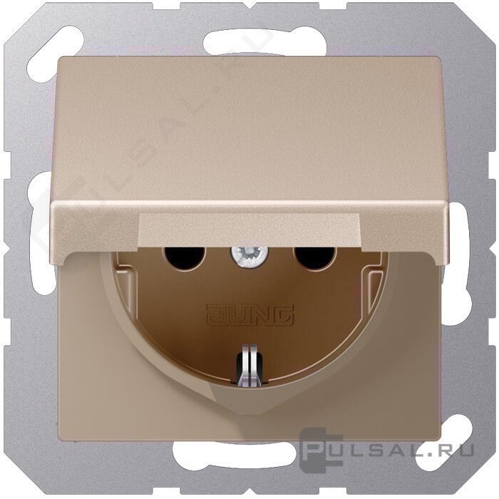 Розетка A VIVA, A creation, A 550, A flow, со шторками, с крышкой, с заземлением, одинарная, безвинтовые клеммы, цвет - шампань