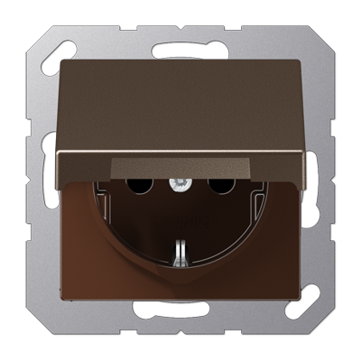 Розетка A VIVA, A creation, A 550, A flow, без шторок, с крышкой, с заземлением, одинарная, безвинтовые клеммы, цвет - мокко