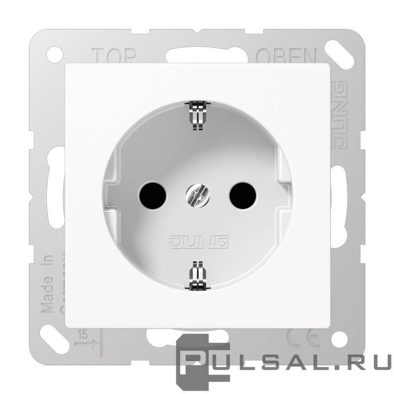 Розетка A VIVA, A creation, A 550, A flow, AS 500, со шторками, с заземлением, одинарная, безвинтовые клеммы, цвет - белый