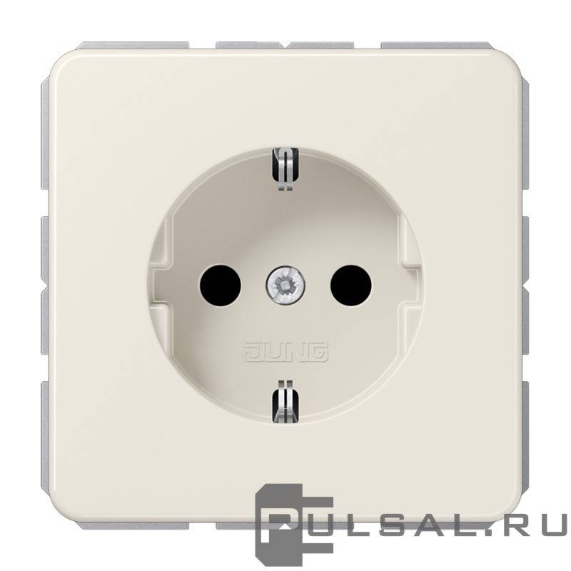 Розетка CD ударопрочная, со шторками, с заземлением, одинарная, безвинтовые клеммы, цвет - слоновая кость