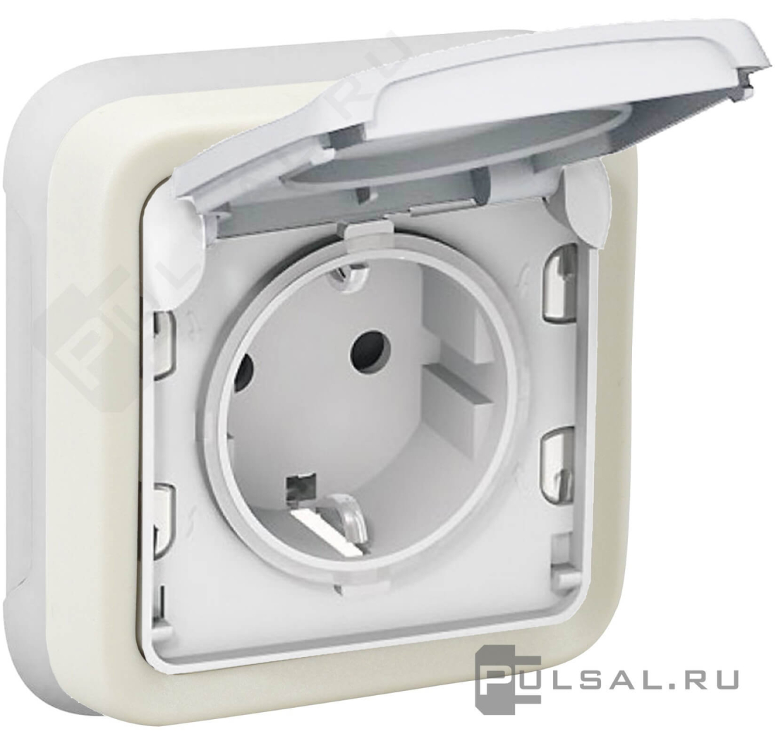 Розетка Plexo, без шторок, с заземлением, одинарная, винтовые клеммы, цвет - белый