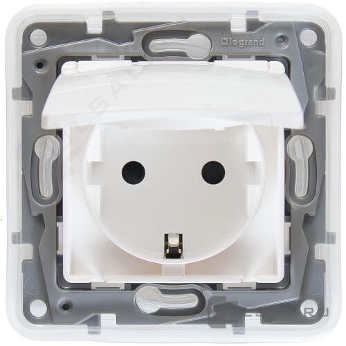 Розетка Etika, со шторками, с крышкой, с заземлением, одинарная, винтовые клеммы, цвет - белый