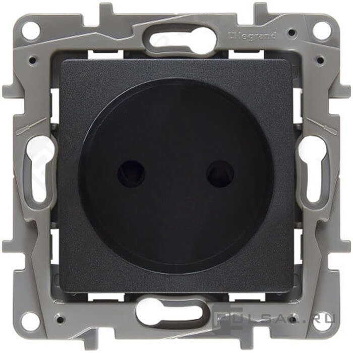Розетка Etika Plus Etika, со шторками, без заземления, одинарная, безвинтовые клеммы, цвет - антрацит