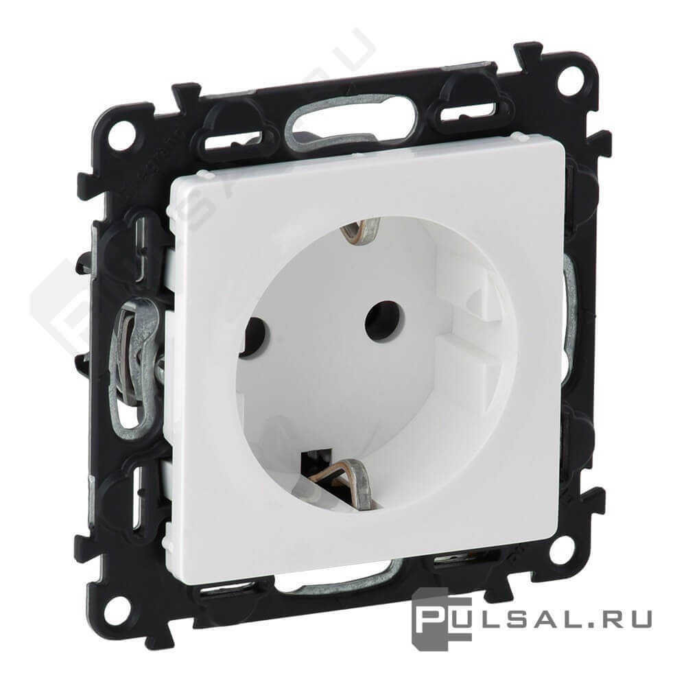 Розетка Valena Life, без шторок, с заземлением, одинарная, винтовые клеммы, цвет - белый