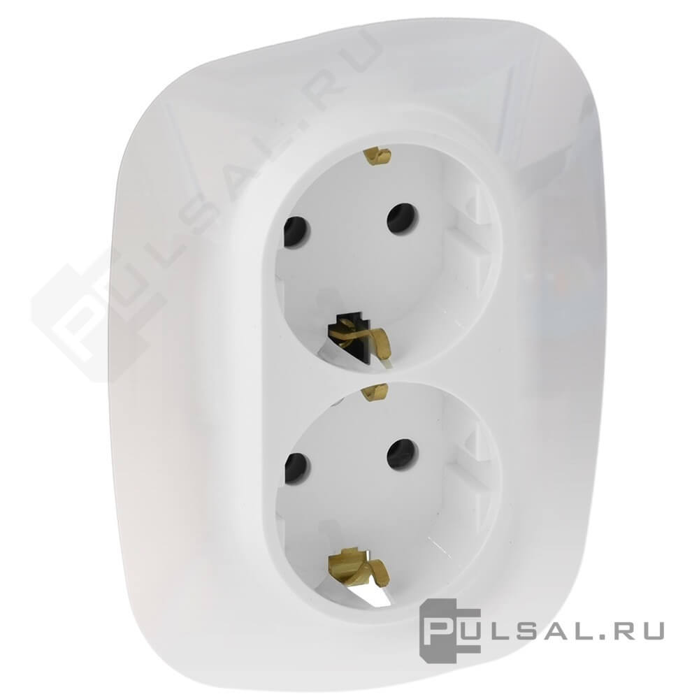 Двойная электрическая розетка в сборе 2х2К+З в одинарную монтажную коробку