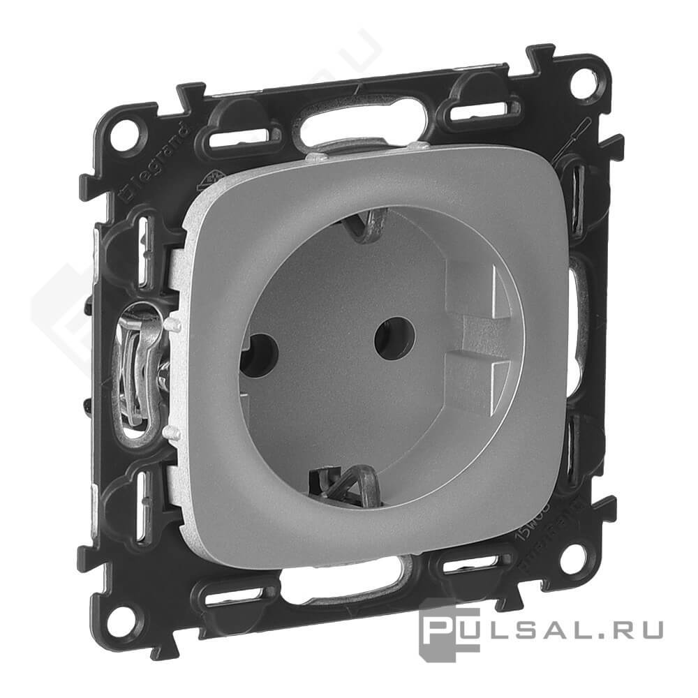 Умная розетка Netatmo, Valena Allure, со шторками, с заземлением, одинарная, безвинтовые клеммы, цвет - алюминий