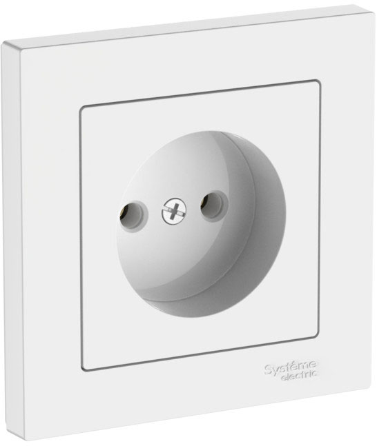 Розетка с рамкой (безвинтовые клеммы) Atlas Design, без шторок, без заземления, одинарная, безвинтовые клеммы, цвет - белый