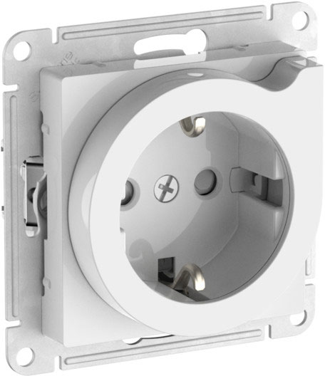 Розетка с выталкиванием вилки Atlas Design Antique, AtlasDesign Air, Atlas Design, со шторками, с заземлением, одинарная, винтовые клеммы, цвет - белый
