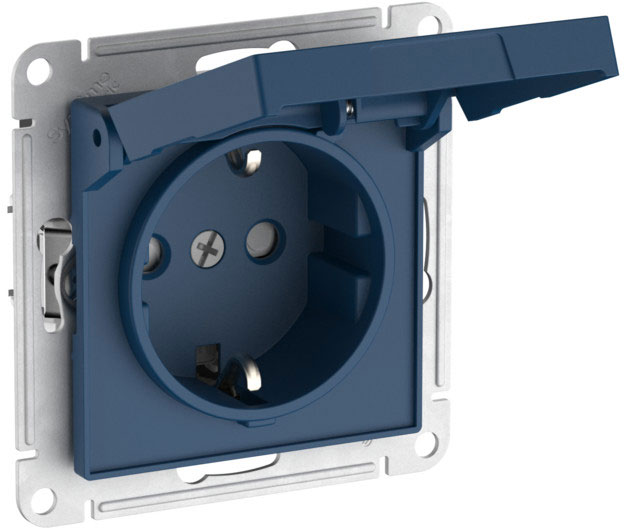 Розетка (безвинтовые клеммы) Atlas Design Antique, AtlasDesign Air, Atlas Design, со шторками, с крышкой, с заземлением, одинарная, безвинтовые клеммы, цвет - аквамарин