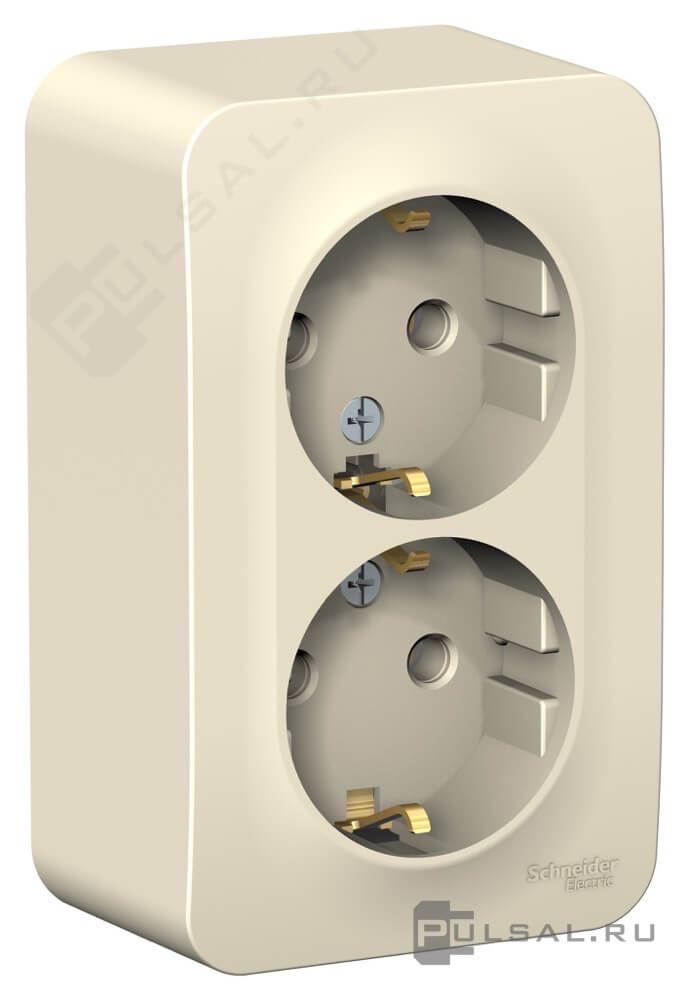 Розетка в одну монтажную коробку Blanca, со шторками, с крышкой, с заземлением, двойная, цвет - молочный