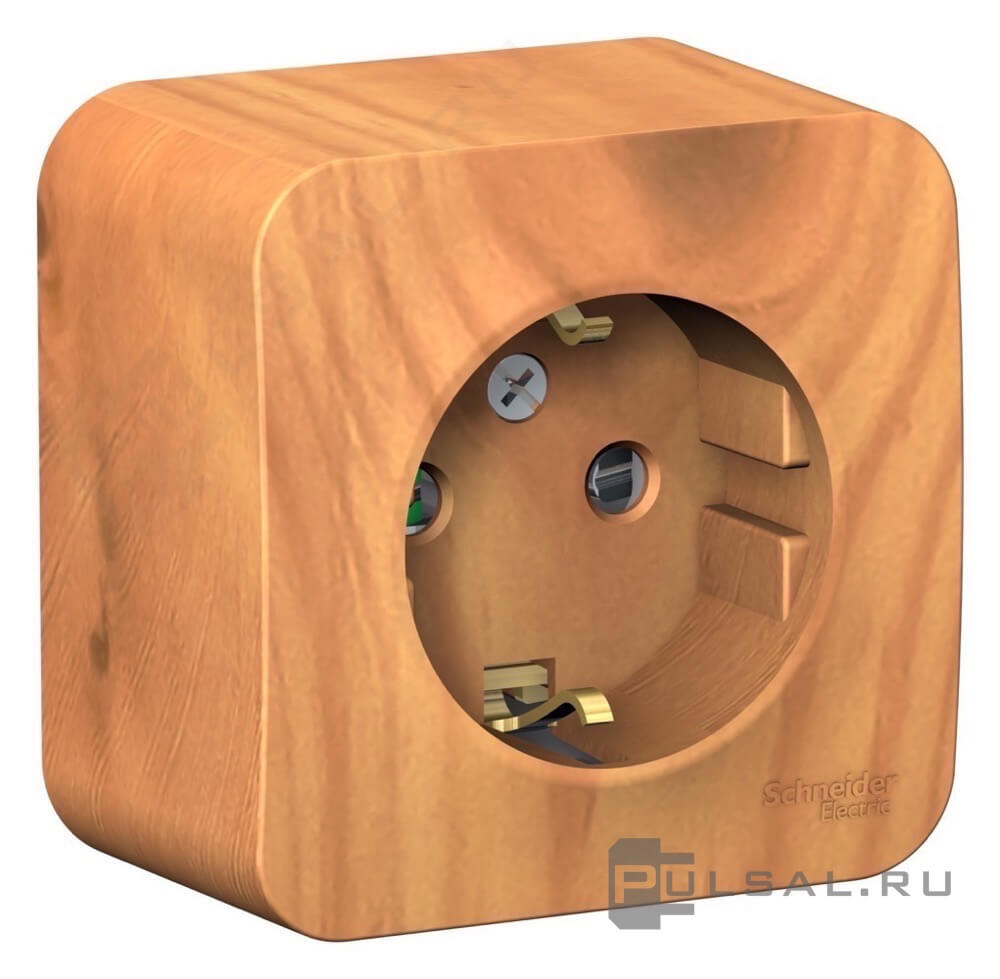 Розетка с изолирующей пластиной Blanca, без шторок, с заземлением, одинарная, цвет - ясень