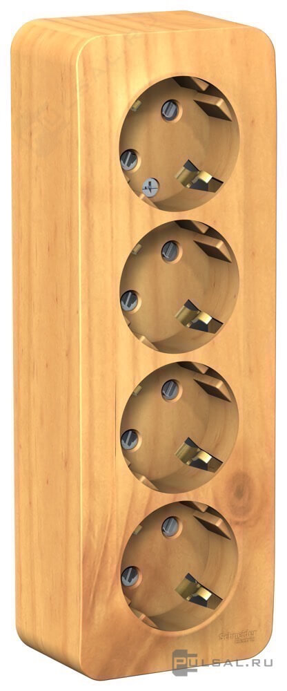 Розетка с изолирующей пластиной Blanca, без шторок, без заземления, четверная, цвет - ясень