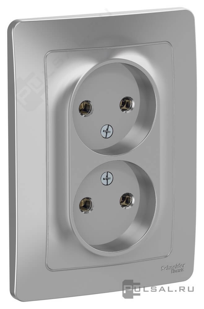 Розетка с рамкой Blanca, без шторок, без заземления, двойная, цвет - алюминий