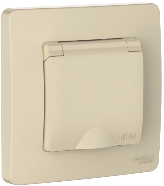 Розетка с рамкой 16A Blanca, со шторками, с крышкой, с заземлением, одинарная, винтовые клеммы, цвет - бежевый