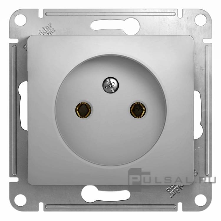 Розетка Glossa, без шторок, без заземления, одинарная, винтовые клеммы, цвет - алюминий