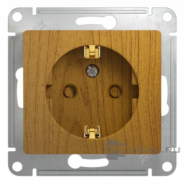Розетка Glossa, без шторок, с заземлением, одинарная, винтовые клеммы, цвет - дуб