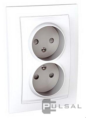 Розетка моноблок Unica Базовая, Unica Хамелеон, Unica Quadro, со шторками, без заземления, двойная, винтовые клеммы, цвет - белый