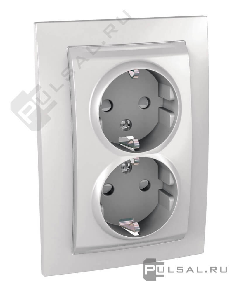 Розетка моноблок Unica Базовая, Unica Хамелеон, Unica Quadro, со шторками, без заземления, двойная, винтовые клеммы, цвет - белый
