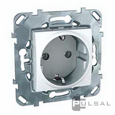 Розетка моноблок Unica Базовая, Unica Хамелеон, со шторками, с крышкой, с заземлением, одинарная, винтовые клеммы, цвет - белый